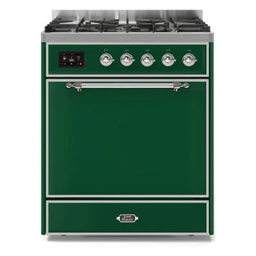 ILVE Majestic II 30" Dual Fuel Range 5 Sealed Burners, Solid Door, Emerald Green, Chrome Knobs-Natural Gas