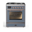 ILVE Majestic II 30” Dual Fuel Range 5 Sealed Burners, Triple Glass Door, Blue Grey, Copper Knobs-LP