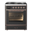 ILVE Majestic II 30” Dual Fuel Range 5 Sealed Burners, Triple Glass Door, Graphite Matte, Copper Knobs-LP