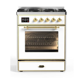 ILVE Majestic II 30" Dual Fuel Range 5 Sealed Burners, Triple Glass Door, White, Brass Knobs-Natural Gas