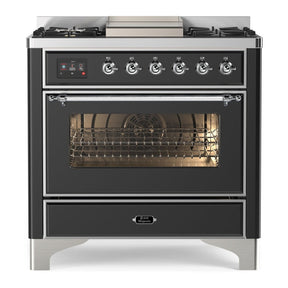 ILVE Majestic II 36" Dual Fuel Range 6 Sealed Burners, Triple Glass Door, Graphite Matte, Chrome Knobs-LP