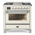 ILVE Majestic II 36" Dual Fuel Range 6 Sealed Burners, Triple Glass Door, Antique White, Chrome Knobs-LP