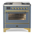 ILVE Majestic II 36" Dual Fuel Range 6 Sealed Burners, Triple Glass Door, Blue Grey, Brass Knobs-LP