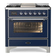 ILVE Majestic II 36" Dual Fuel Range 6 Sealed Burners, Triple Glass Door, Midnight Blue, Chrome Knobs-Natural Gas