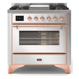 ILVE Majestic II 36" Dual Fuel Range 6 Sealed Burners, Triple Glass Door, Stainless Steel, Copper Knobs-Natural Gas