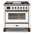 ILVE Majestic II 36" Dual Fuel Range 6 Sealed Burners, Triple Glass Door, White, Burnished Knobs-LP