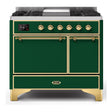 ILVE Majestic II 40" Dual Fuel Range 6 Sealed Burners, Solid Door, Emerald Green, Brass Knobs-LP