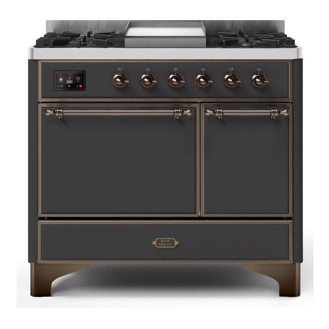 ILVE Majestic II 40" Dual Fuel Range 6 Sealed Burners, Solid Door, Graphite Matte, Burnished Knobs-Natural Gas