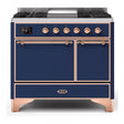 ILVE Majestic II 40" Dual Fuel Range 6 Sealed Burners, Solid Door, Midnight Blue, Copper Knobs-Natural Gas