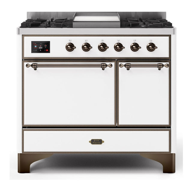 ILVE Majestic II 40" Dual Fuel Range 6 Sealed Burners, Solid Door, White, Burnished Knobs-Natural Gas