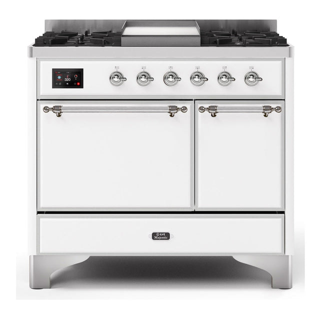 ILVE Majestic II 40" Dual Fuel Range 6 Sealed Burners, Solid Door, White, Chrome Knobs-Natural Gas