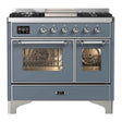 ILVE Majestic II 40" Dual Fuel Range 6 Sealed Burners, Triple Glass Door, Blue Grey, Chrome Knobs-LP