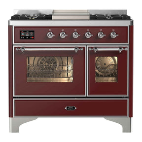 ILVE Majestic II 40" Dual Fuel Range 6 Sealed Burners, Triple Glass Door, Burgundy, Chrome Knobs-Natural Gas