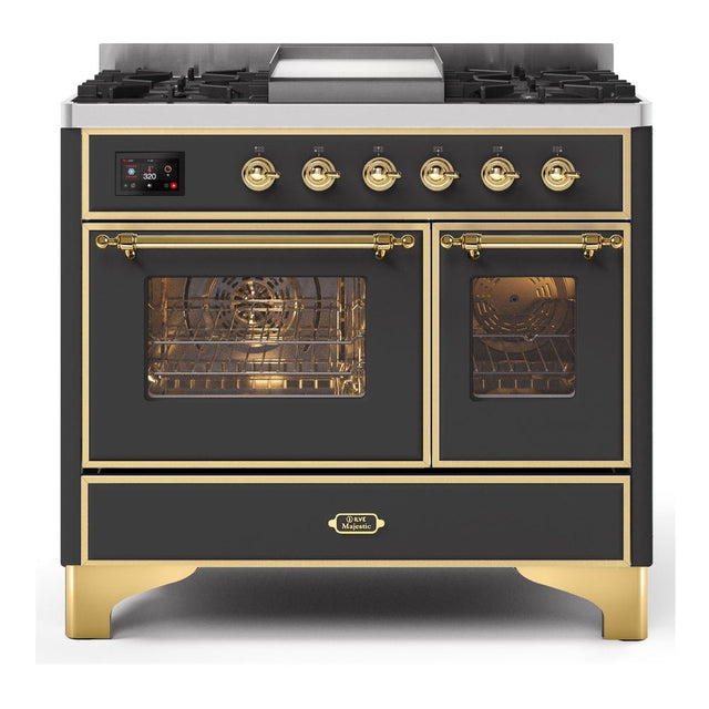 ILVE Majestic II 40" Dual Fuel Range 6 Sealed Burners, Triple Glass Door, Graphite Matte, Brass Knobs-LP
