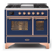 ILVE Majestic II 40" Dual Fuel Range 6 Sealed Burners, Triple Glass Door, Midnight Blue, Copper Knobs-Natural Gas