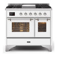 ILVE Majestic II 40" Dual Fuel Range 6 Sealed Burners, Triple Glass Door, White, Chrome Knobs-Natural Gas